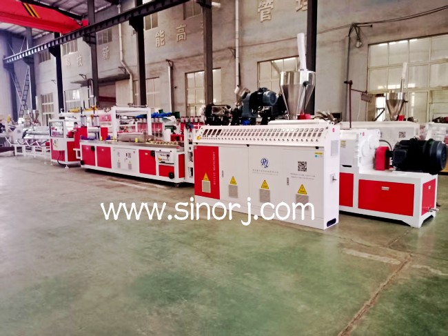 調(diào)試完成的pe共擠木塑生產(chǎn)線等待發(fā)貨中
