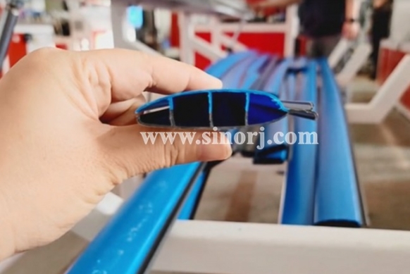 PC共擠型材生產(chǎn)線試機進行中